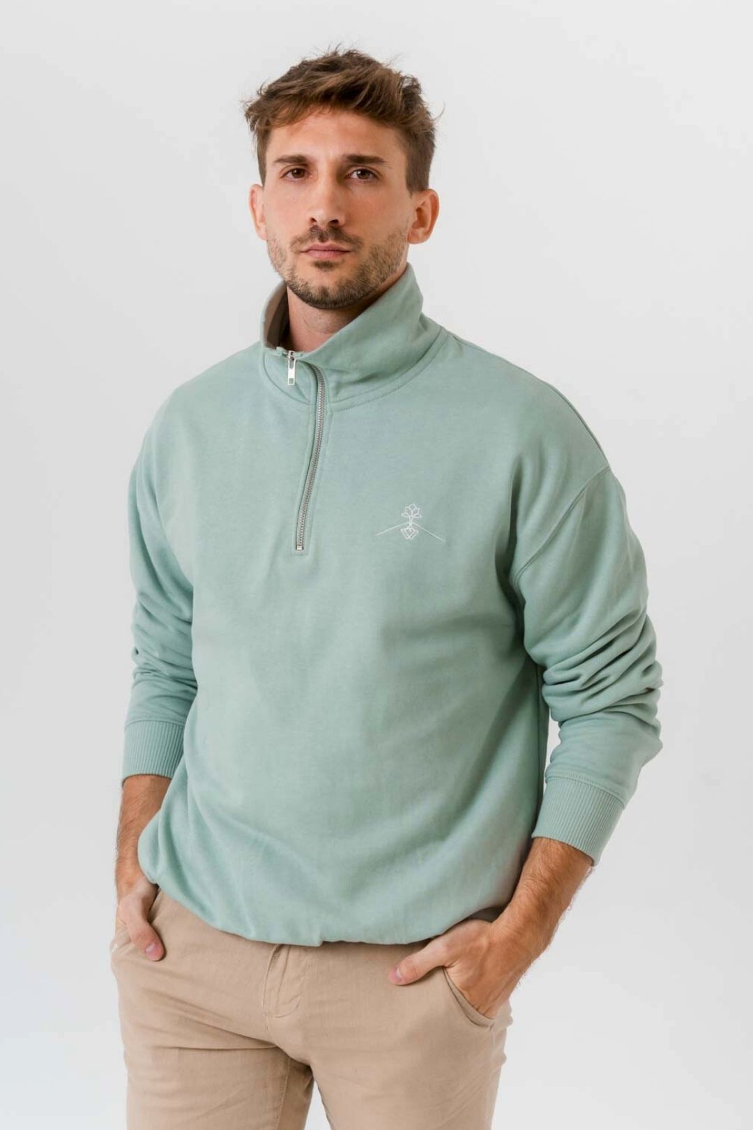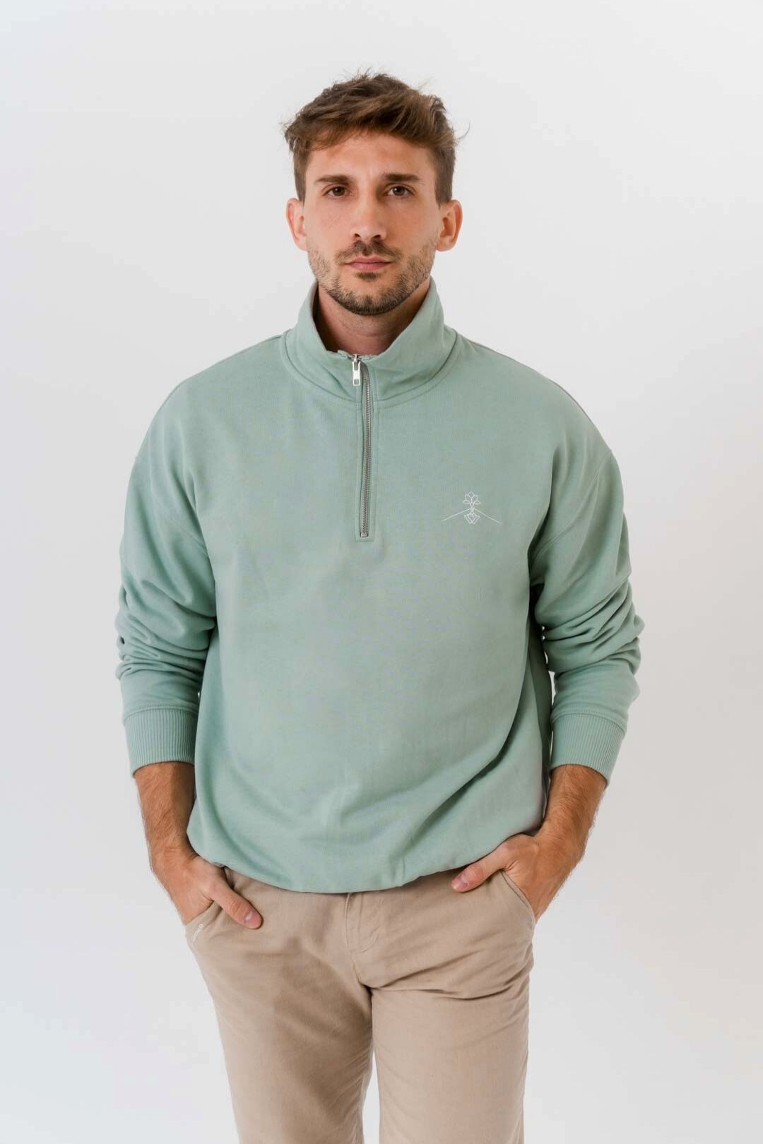 Sweat col zippé 100% coton biologique - Aloé